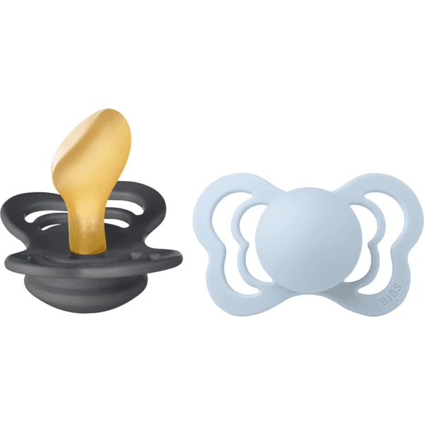 BIBS® Schnuller Couture Iron & Baby Blue Latex 6-18 Monate, 2 Stk.