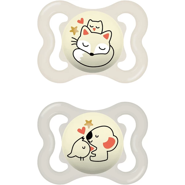 MAM Nachtschnuller Supreme Night Silikon, 0-6 Monate, 2 Stk., Fuchs/Koala