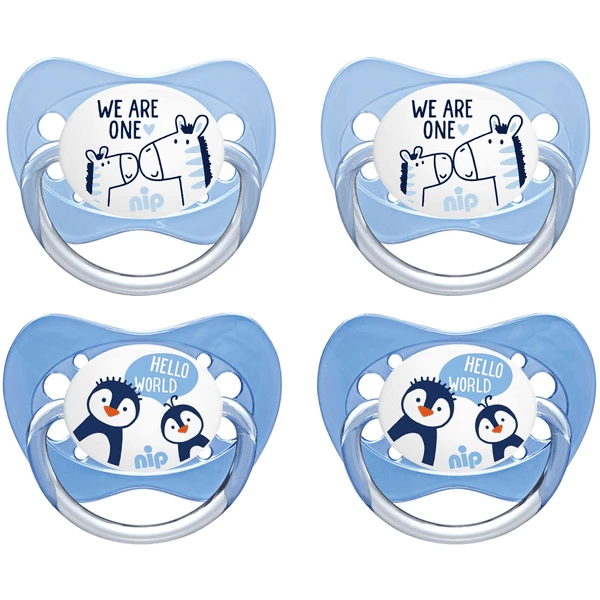 nip® Schnuller Family Gr. 2 Silikon Pinguin und Zebra 4 Stück