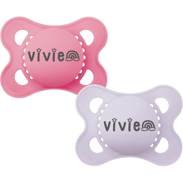 Schnullireich Schnuller mit Namen / Namensschnuller MAM Pure Rainbow – 2er Set (Mädchen) Rosa