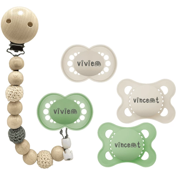 Schnullireich Schnuller mit Namen / Namensschnuller MAM Pure + Schnullerkette (Unisex) Grün